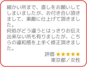 その時点で必要に応じて、濃淡の調整や輪郭の修正など、軽微な修正を承っております。