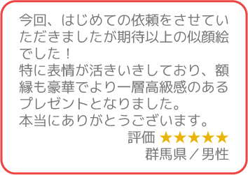 表情や雰囲気がはっきり分かる1枚をお送りいただけると、より精細な仕上がりになります。